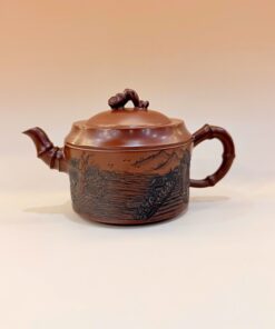 Ấm trà tử sa nê hưng kiến thủy trúc đoạn khắc phố cổ đẹp 250ml AKC282