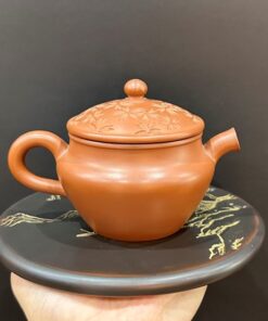 Ấm trà tử sa nê hưng khắc hoa trên nắp đẹp màu đỏ tươi 250ml AKC112
