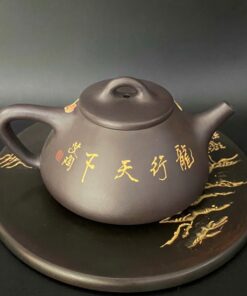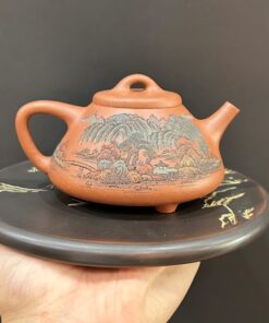 Ấm trà tử sa thạch biều nguyên khoáng đất cũ khắc sơn thủy 20ml đẹp ATS507