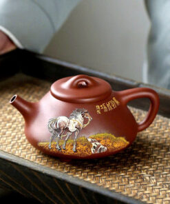 Ấm trà tử sa thạch biều nghi hưng cao cấp đắp nổi ngựa 300ml ATS155