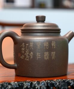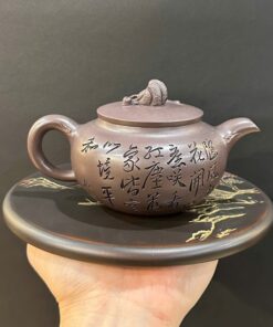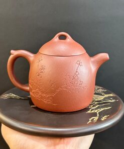 Ấm tử sa đất cũ nguyên khoáng thủ công dáng tần quyền khắc hoa 240ml ATS249