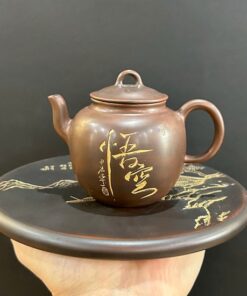 Ấm nê hưng cao cấp lão sư thủ công đắp nổi tùng nâu đẹp 240ml AKC235