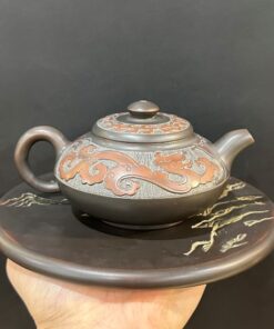 Ấm tử sa hỏa biến khắc rồng nổi thủ công cao cấp 350ml đẹp AKC55