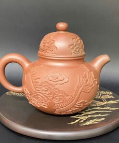 ấm tử sa đức trung đất cũ khắc tiên hạc cao cấp 300ml ATS153