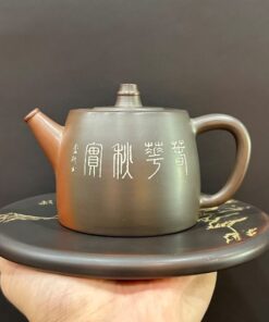 Ấm tử sa nê hưng cao cấp khắc sơn thuỷ thủ công 250ml AKC06