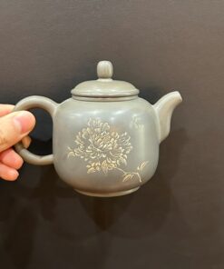 Ấm tử sa nê hưng dáng tỉnh lan khắc hoa màu xanh đẹp 280ml AKC07