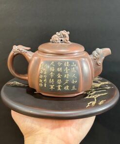 Ấm tử sa nê hưng cao cấp linh chi long ẩn thủ công 250ml đẹp AKC179