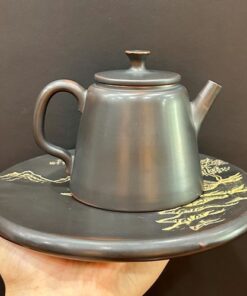 Ấm tử sa Nê Hưng đức trung khắc sơn thủy lâu các 250ml AKC109
