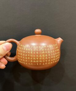 Ấm tử sa nê hưng hỏa biến thủ công dáng đức trung khắc mặt hổ đẹp 230ml AKC158
