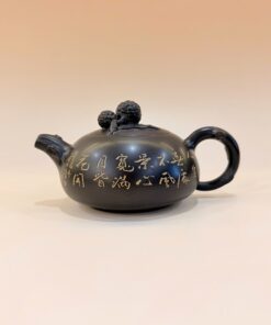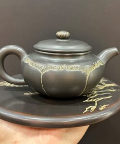 Ấm tử sa nê hưng phỏng cổ khắc đài sen hỏa biến đen đẹp 260ml AKC188