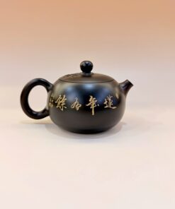 Ấm tử sa nê hưng tây thi khắc sen cao cấp 230ml vàng AKC205