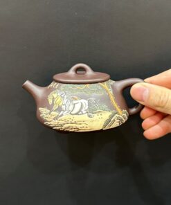 Ấm tử sa thạch biều song mã nguyên khoáng đất cũ 190ml ATS90