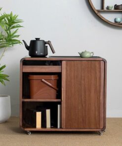 Bàn Trà Gỗ Óc Chó Di Động Mặt Đá Hai Ngăn Hở Cao 66x73.5x45cm BT19
