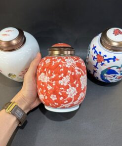 Bình đựng trà sứ cảnh đức vẽ tay thủ công nắp xoáy kín đẹp 800ml HT57