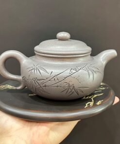Bình trà tử sa phỏng cổ khắc trúc đẹp nguyên khoáng đất cũ 280ml ATS517