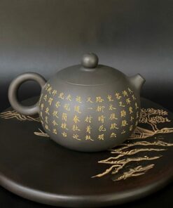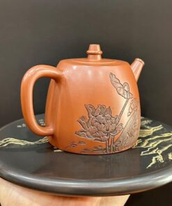 Ấm pha trà cao cấp dáng đức trung khắc sen thủ công 300ml AKC116