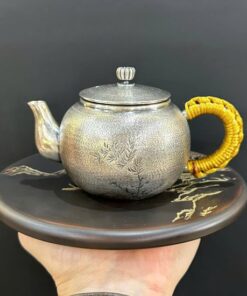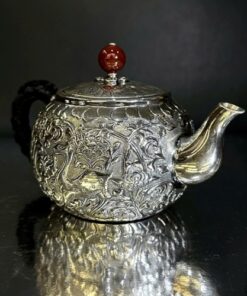 Ấm pha trà bạc nguyên chất cao cấp 999 gò tay thủ công cực đẹp AB81