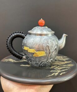 Ấm pha trà bạc nguyên chất ag 999 thủ công sơn thủy đẹp 230ml 173g AB08