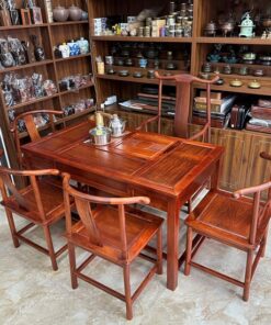 Bộ bàn ghế uống trà gỗ hương lào kiểu Tàu làm trà thất 1m6 BT33