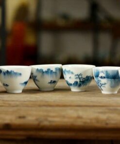 Bộ chén cảnh đức vẽ tay sơn thuỷ đẹp 6 cái 60ml dáng cao đẹp CS01