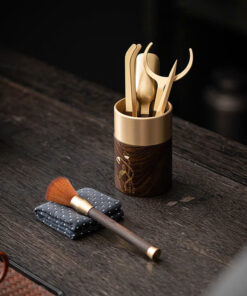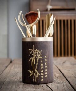 Bộ dụng cụ trà đạo cao cấp gỗ gụ kẹp đồng công năng tốt đẹp KH28