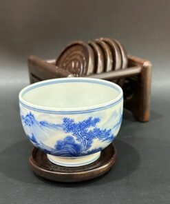 Bộ kê ly trà gỗ gụ dáng tròn chữ trà làm lót chén cao cấp LC14