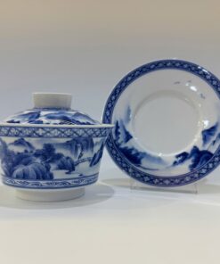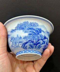 Chén khải cảnh đức cao cấp men lam vẽ tay sơn thủy thủ công 220ml AS26