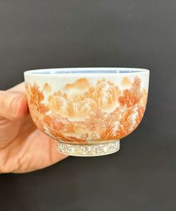Chén khải cảnh đức sứ phấn thái đỏ phèn cao cấp vẽ tay sơn thủy đẹp 180ml AS79
