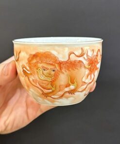 Chén chủ sứ phấn thái cảnh đức cao cấp vẽ tay kỳ lân đẹp 120ml CS53