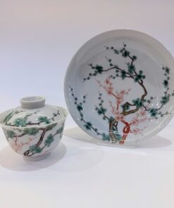 Chén khải cảnh đức men ngũ thái cao cấp vẽ tay sơn thủy mùa đông 180ml AS78