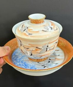 Chén khải cao cấp sứ cảnh đức vẽ tay hạc đẹp làm tiềm pha trà ngon 200ml AS74