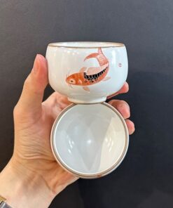 Chén sứ cảnh đức cao cấp họa cá chép vẽ tay nung củi đẹp 80ml CS52