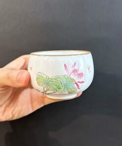 Chén sứ cảnh đức cao cấp vẽ tay hoa sen thái hội nung củi 100ml CS45