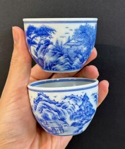 Chén sứ cảnh đức cao cấp men thanh hoa vẽ tay sơn thủy đẹp cỡ vừa 70ml CS63