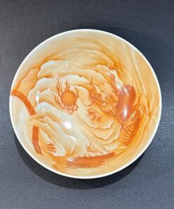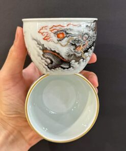 Chén sứ cảnh đức gốm phấn thái vẽ tay cao cấp rồng hắc long đẹp 120ml CS70