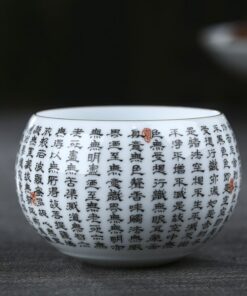 Chén Sứ Cảnh Đức Khắc Bát Nhã Hoa Sen Dáng Khum 180ml CS29