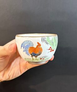 Chén sứ cảnh đức nung củi họa gà trống vẽ tay 130ml làm ly chủ đẹp CS41