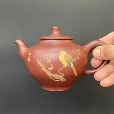 ấm trà tử sa nghi hưng quần ẩm đẹp đắp nổi chim 330ml ATS208
