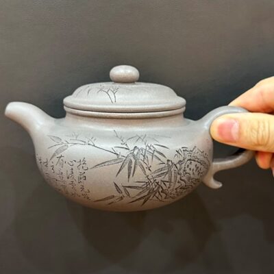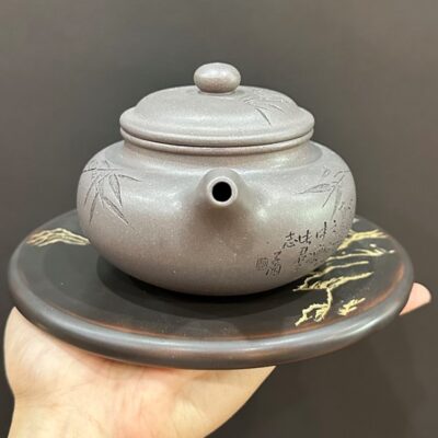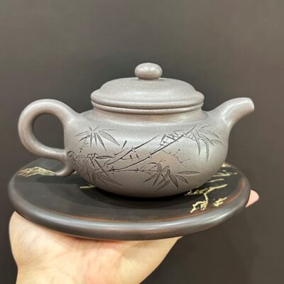 Bình trà tử sa phỏng cổ khắc trúc đẹp nguyên khoáng đất cũ 280ml ATS517