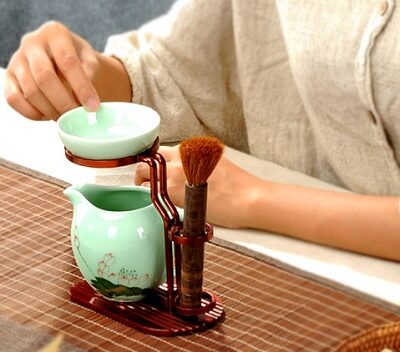 – Công dụng: Kê lọc trà bên trên, chén tống bên dước, cắm dụng cụ pha trà bên cạnh