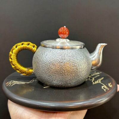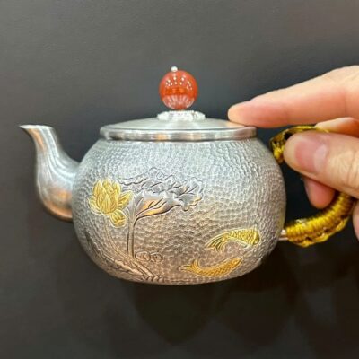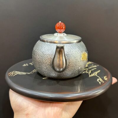Đặt mua Ấm bạc pha trà 999 nguyên chất hoa sen thủ công đẹp 250ml AB85