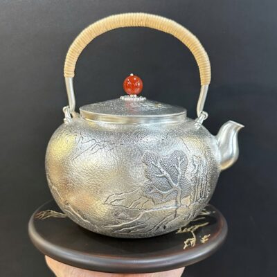 Hãy là người đầu tiên nhận xét “Ấm bạc đun nước nguyên chất 999 gò tay thủ công đẹp sơn thủy nổi 596g AN92”