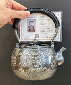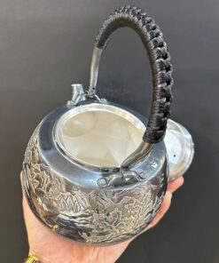 Đặt mua Ấm bạc đun nước nguyên chất 999 gò tay thủ công sơn thủy nổi to đẹp 1.3L 866g AN97
