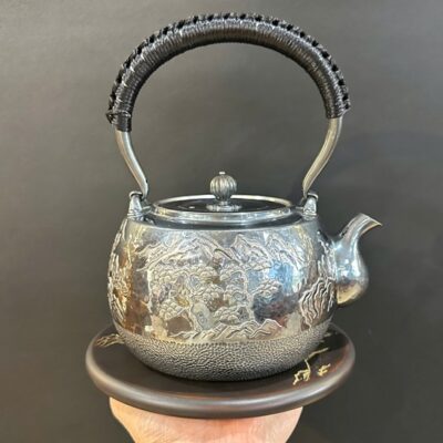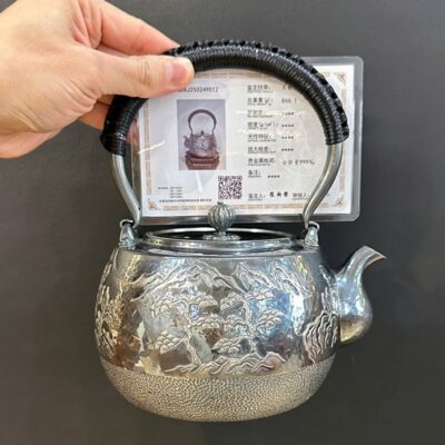 Đặt mua Ấm bạc đun nước nguyên chất 999 gò tay thủ công sơn thủy nổi to đẹp 1.3L 866g AN97