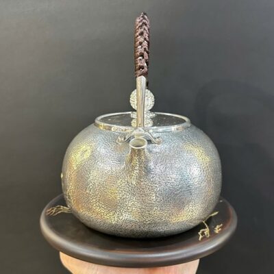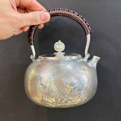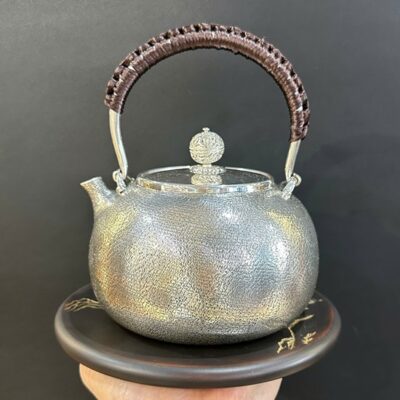 Ấm bạc đun nước nguyên chất 999 thủ công sen cá đẹp cao cấp 800ml 443g AN94