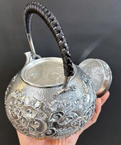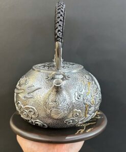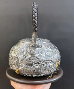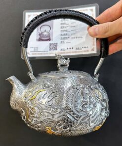 Ấm bạc 999 đun nước pha trà Tetsubin gò tay thủ công rồng đẹp AN83