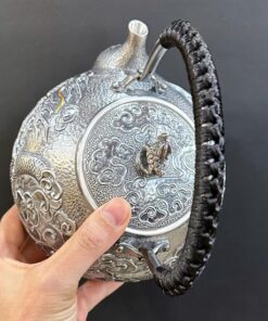 Đặt mua Ấm bạc 999 đun nước pha trà Tetsubin gò tay thủ công rồng đẹp AN83