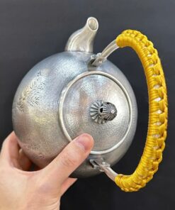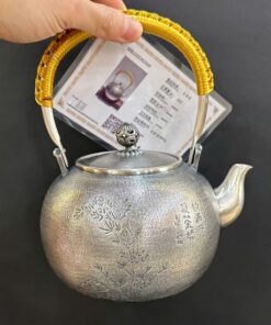 Ấm bạc đun nước pha trà nguyên chất 999 dạng tetsubin khắc trúc đẹp 630g AN89