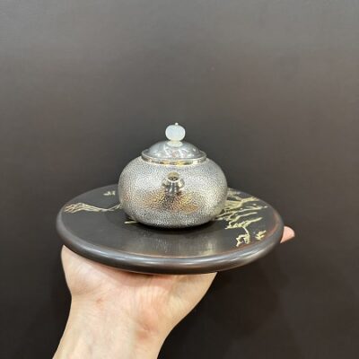 Đặt mua Ấm bạc pha trà nguyên chất 999 gò tay thủ công cỡ nhỏ đẹp AB80