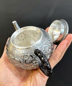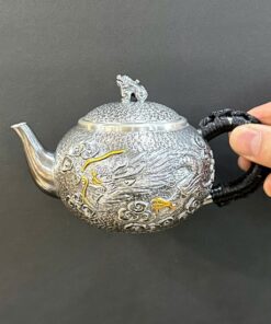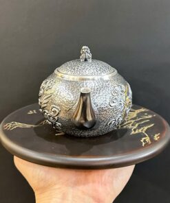 Đặt mua Ấm bạc pha trà nguyên chất 999 gò thủ công họa tiết rồng 250ml AB83